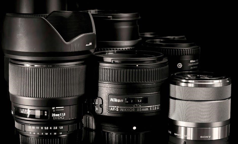 Manual focus on the Nikon D300 allows precise control over focusing. To engage manual focus, switch the lens to MF mode or use the camera’s menu. Techniques include using the electronic rangefinder for confirmation and enabling live view for zoomed-in focusing; For critical focus, use a tripod and disable vibration reduction. Steady hand placement on the lens and careful breathing ensure stability. This method is ideal for macro, portrait, or low-light photography, offering creative control and accuracy when autofocus may struggle.
